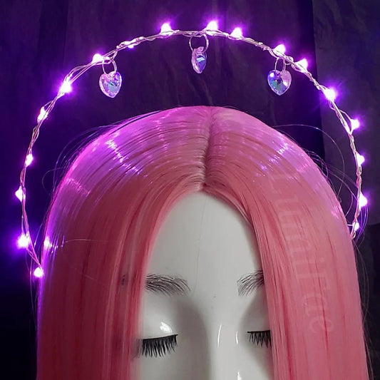 Heart Halo LED Crown - Crystal Hearts, Light Up Headband, Valentine, Festival, Handmade - LumiFae