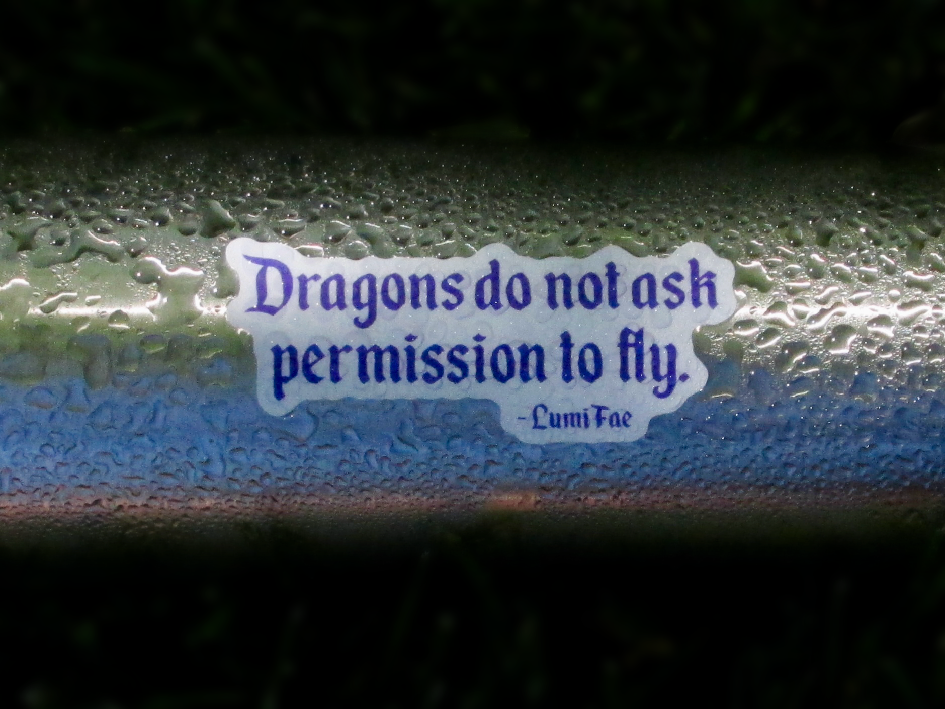 Dragons do not ask permission to fly sticker - empowering quote, 3 inches, waterproof, vinyl, matte - LumiFae